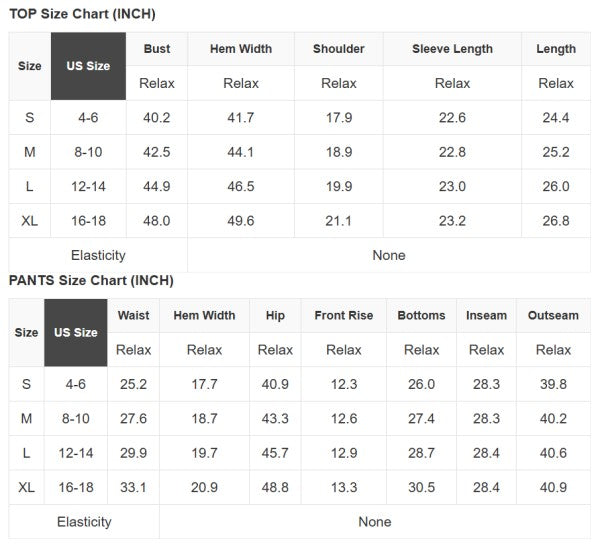 See size chart for approximate measurements
