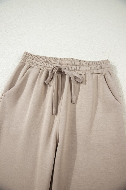 This two-piece active outfit features a hoodie with thumbhole sleeves and a kangaroo pocket, paired with loose drawstring pants that include convenient pockets. Crafted from soft, luxurious modal fabric and detailed with sleek scuba piping, it offers both comfort and a refined, sporty look—perfect for staying active with style. Polyester/Viscose/Spandex Size Info: See size chart for approximate measurements. Season: Fall, Winter, Spring, Summer
