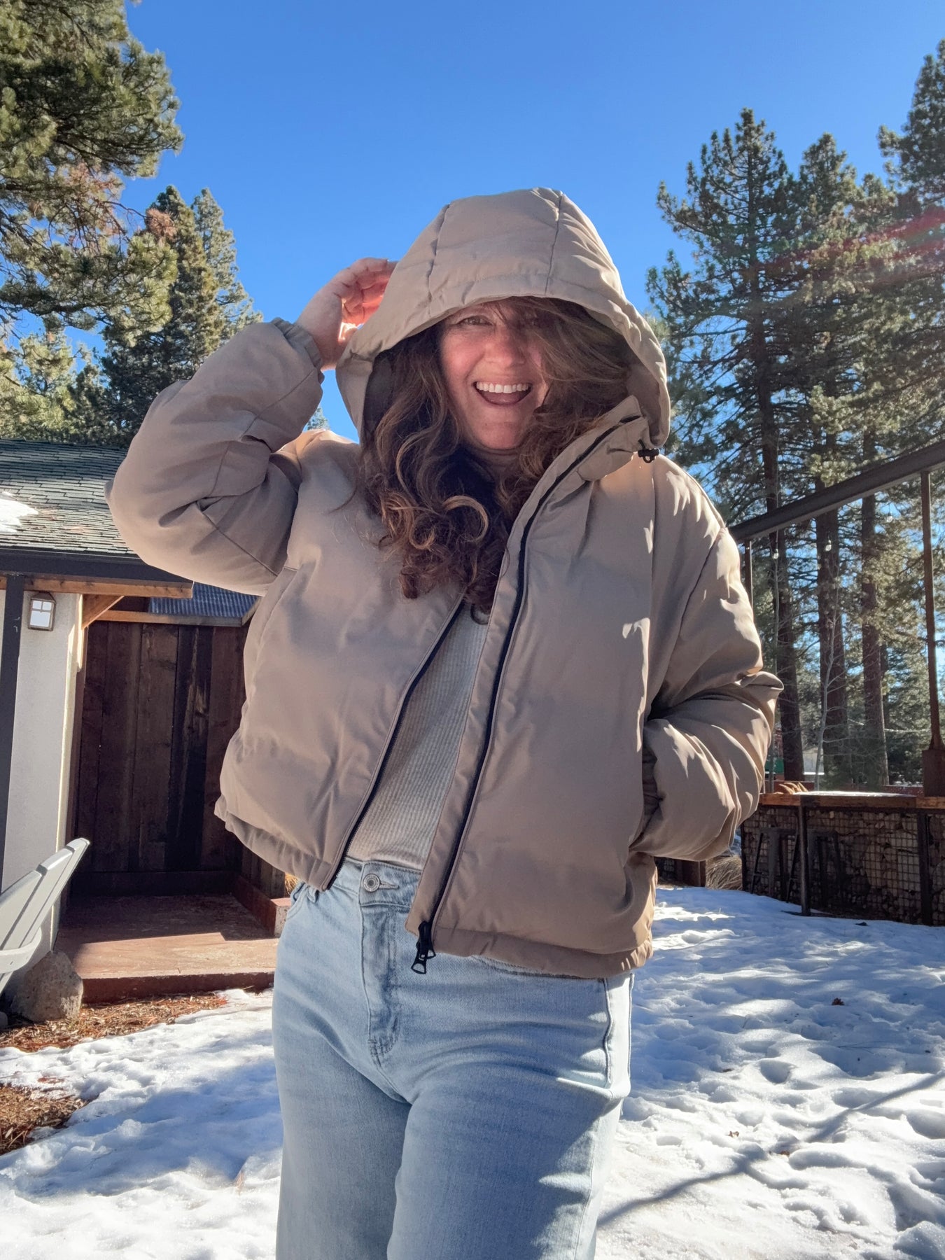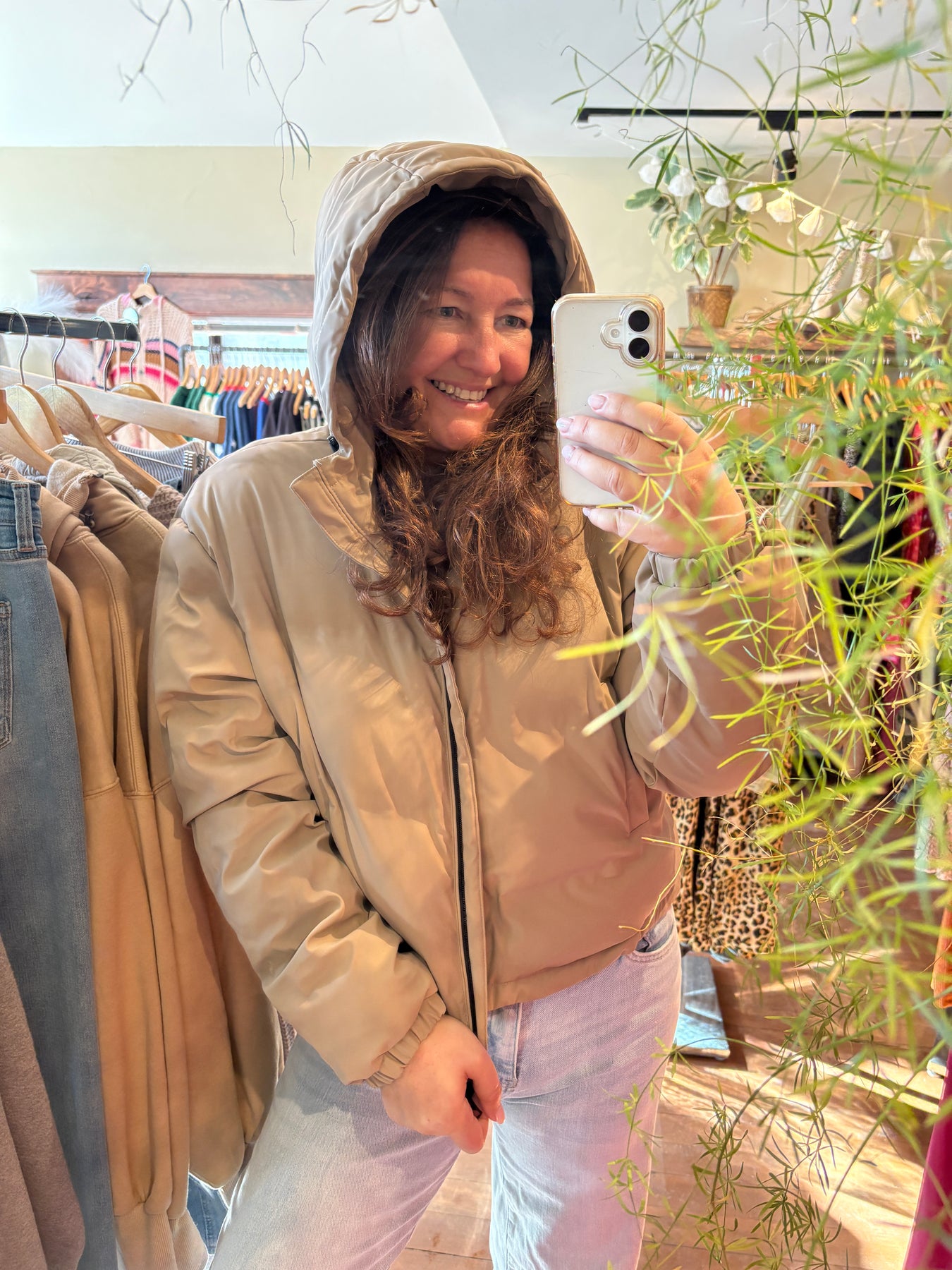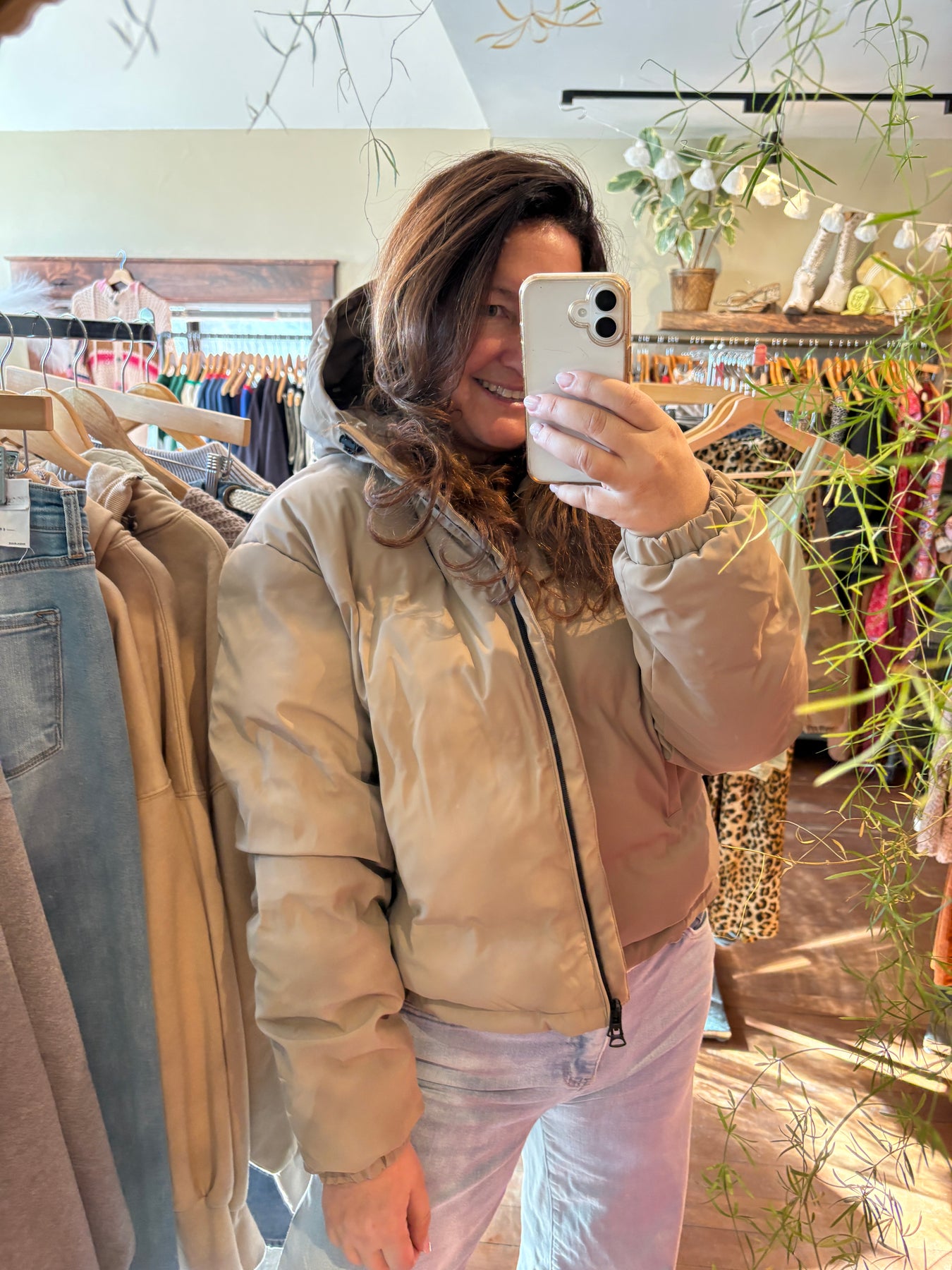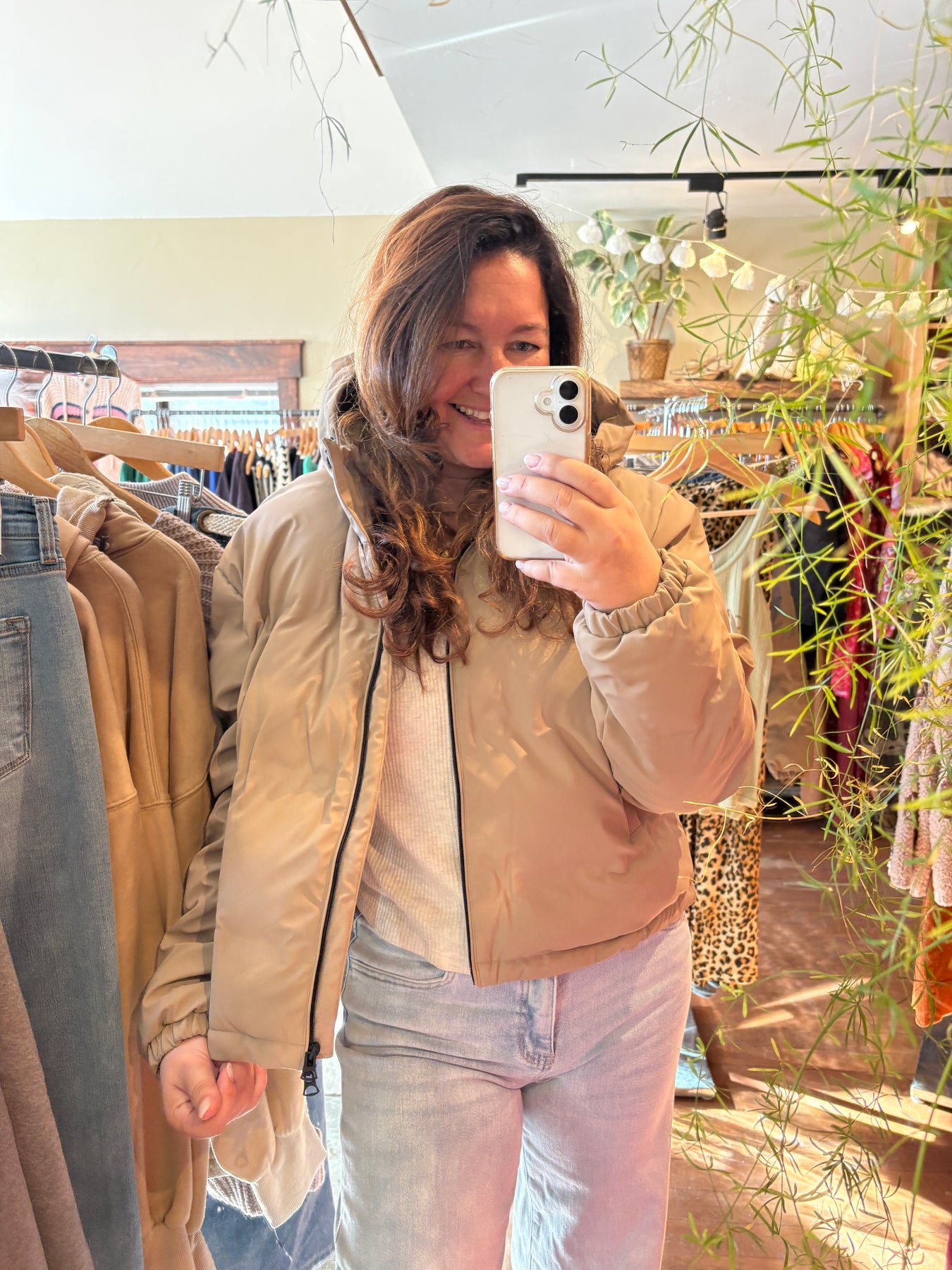 The perfect layering jacket for the smowy spring Season! This long sleeve puffer jacket features a zip-up closure, welted front pockets, an inner zip-up pocket, and an adjustable hood and hem with chord stoppers.