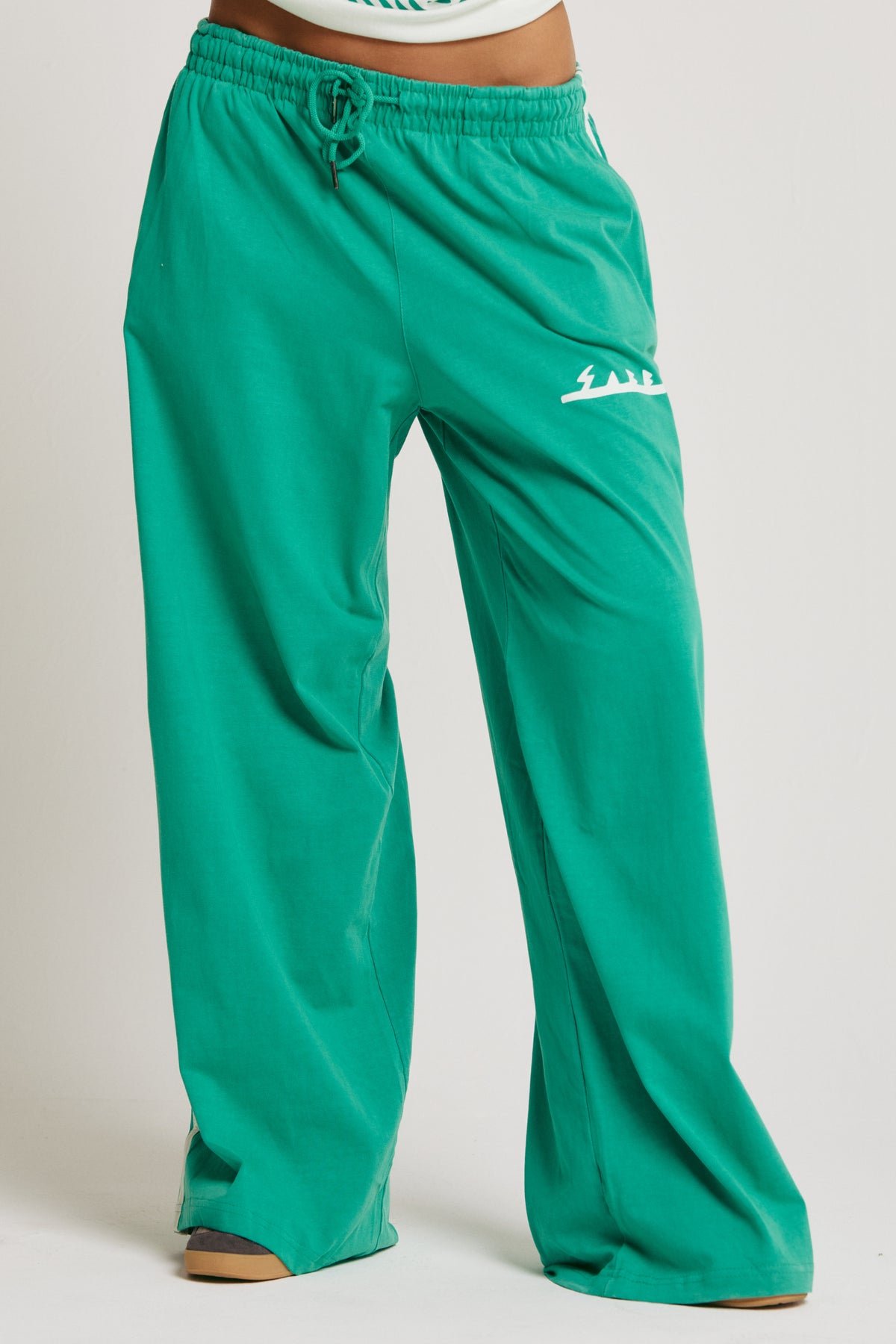 Made from soft, breathable cotton, they feel light but luxe against the skin. The elastic waistband with adjustable drawstring keeps things comfy (and snack-friendly), while the fit gives you that cool, undone drape. Finished with side stripe detailing and subtle Sabbi graphics, they're equal parts lounge and street.