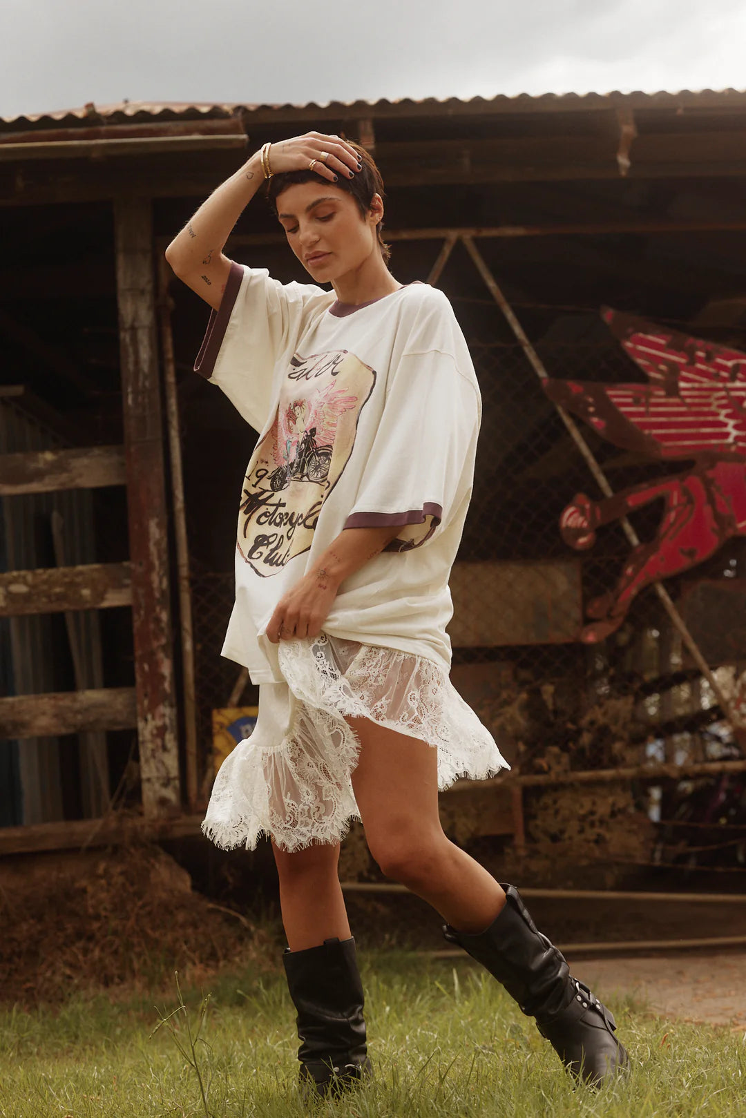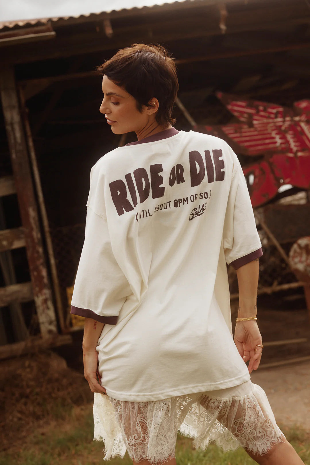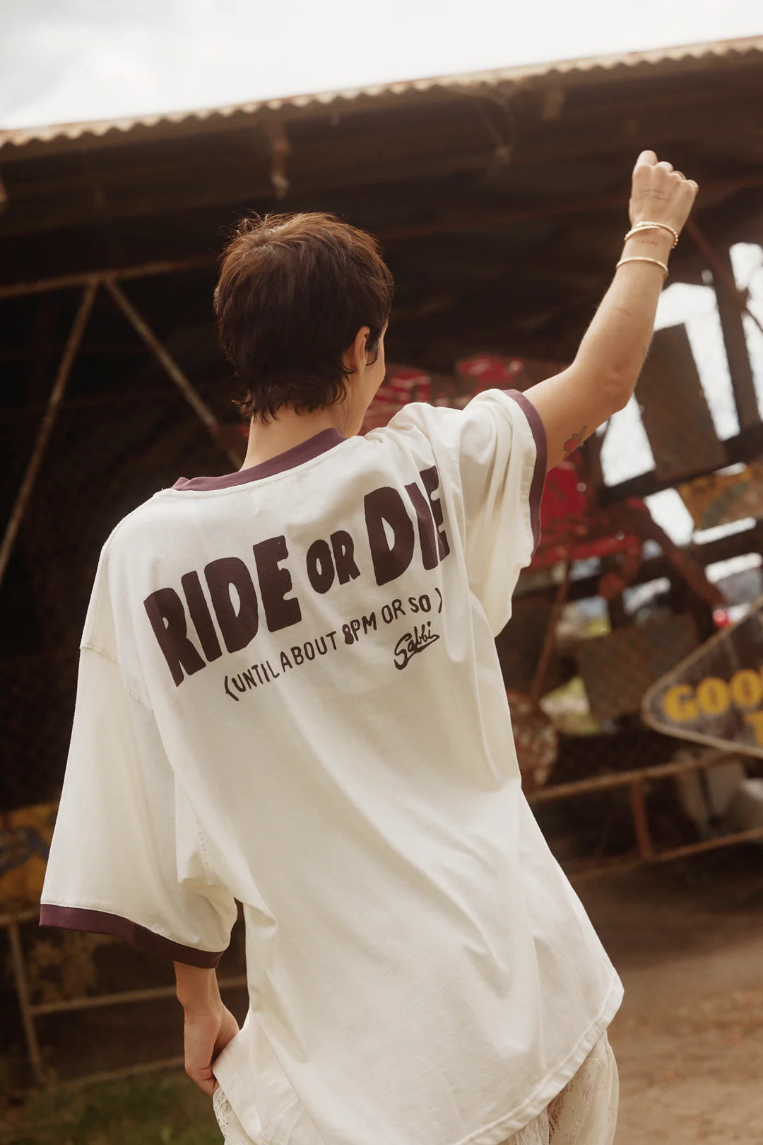 The Very Oversized Ride Or Die Tee is cut with serious slouch - oversized, relaxed and made to hang just right. Featuring bold front and back graphics with vintage motorcycle club energy, this tee feels like a treasured find from a roadside stop you barely remember.