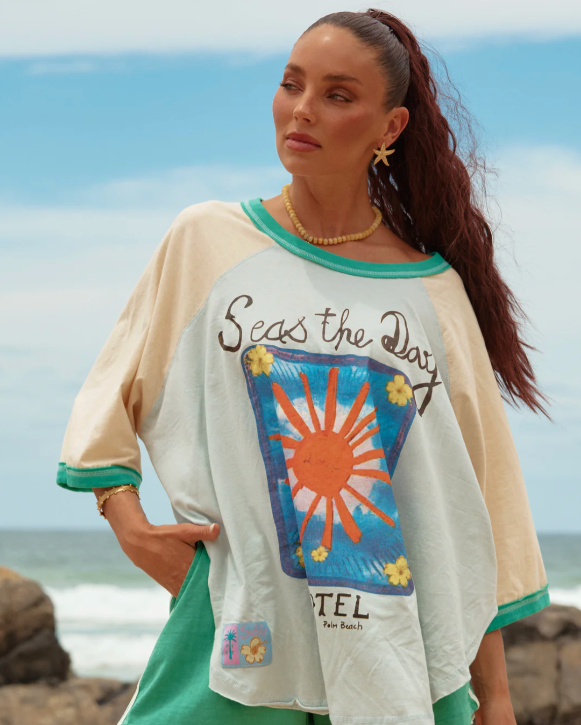 The Seas The Day Raglan Tee is your new go-to for salty hair, sun-kissed skin and not a single plan in sight.