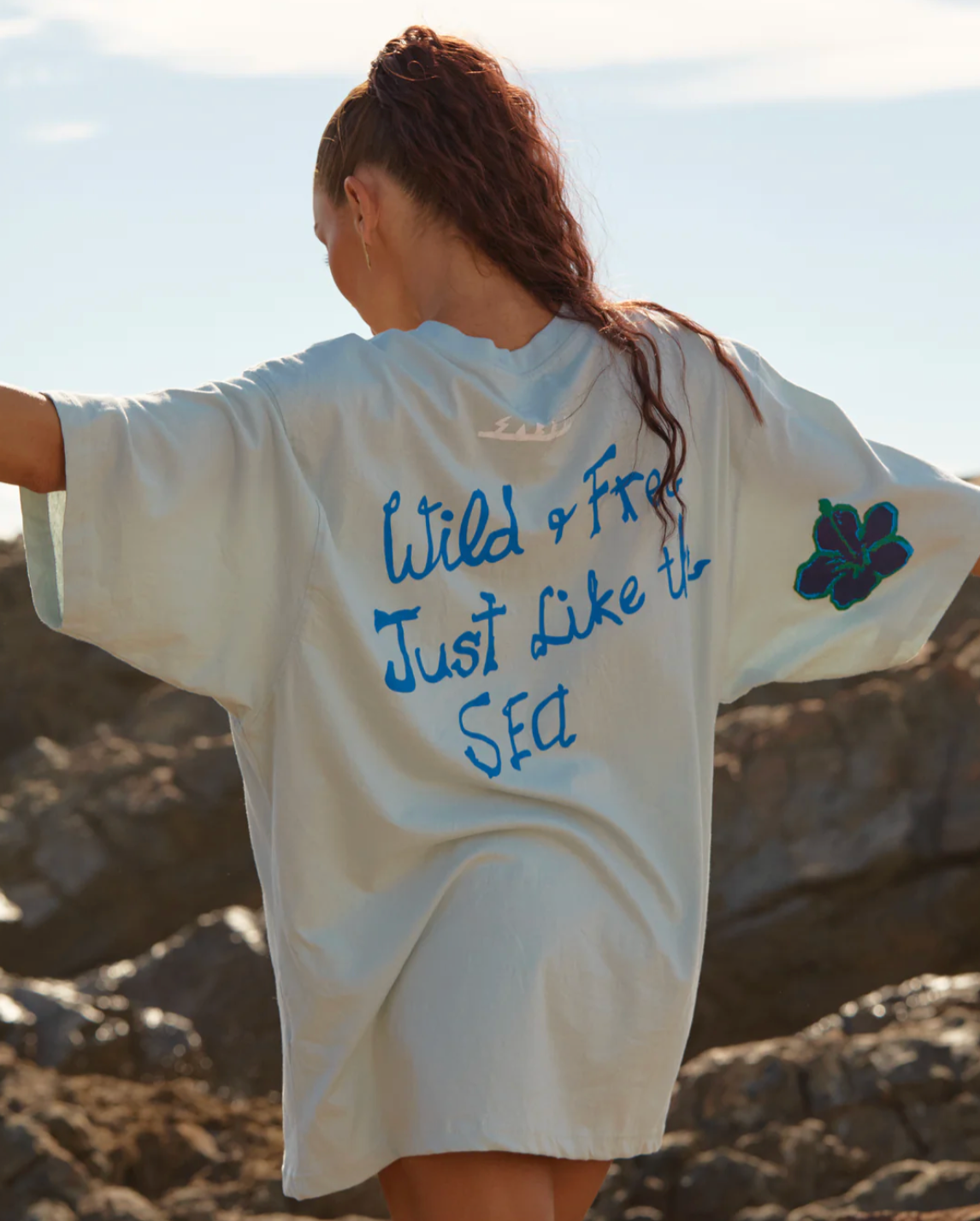 - Wild & Free Just Like The Sea graphic on the back