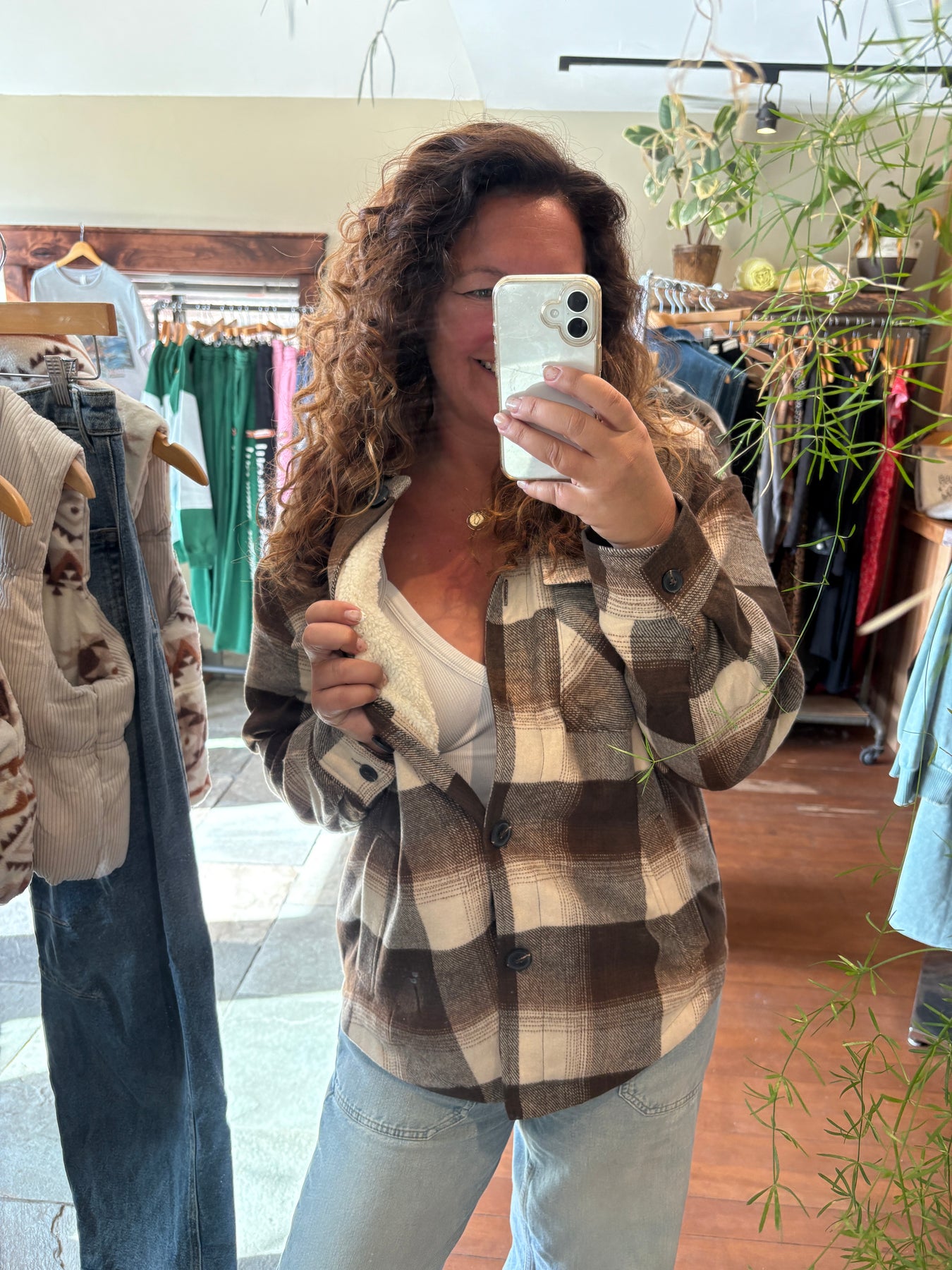 Comfy plaid jacket, fully lined with super soft Sherpa!