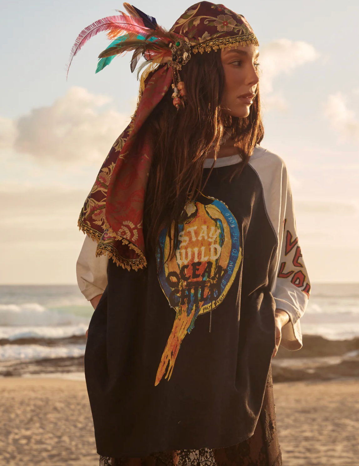 The Stay Wild Raglan Tee is made for those who never quite grew out of adventure. Easy, relaxed and full of personality, its a throw-on tee that feels right at home by the sea, on the road or wherever the day drifts next.