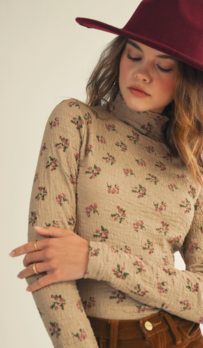 VINTAGE FLORAL SEAMLESS STRETCHY TOP